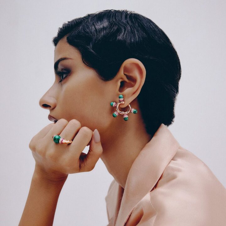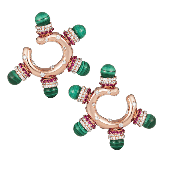 Stones complement each other like members of a live band, each bringing out a special depth to the color tones they create. Lovingly set in 18k gold, they are the life of the party.